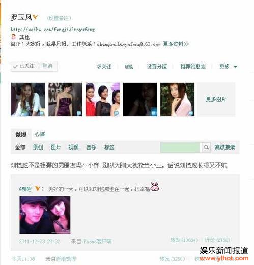 柳岩微博晒与刘恺威合照遭凤姐痛骂